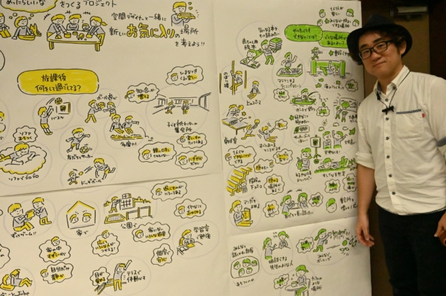 今回もグラフィックレコーダーの中尾さんにご協力を依頼。子どもたちのアイデアをすてきなアイデアマップに仕上げてくださいました。