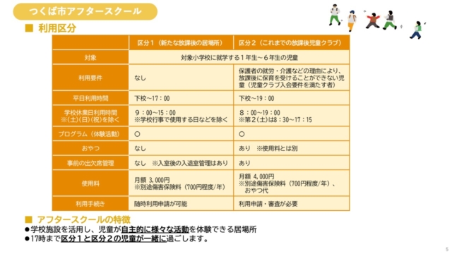 これらの課題解決に加え、『第3期つくば市子ども・子育て支援プラン』の基本目標である「放課後の活動充実」や、『つくば市教育大綱』の「管理」から「自己決定へ」という目標の実現に向け、2025年度から学校施設を活用した「つくば市アフタースクール事業」が立ち上げられました 。