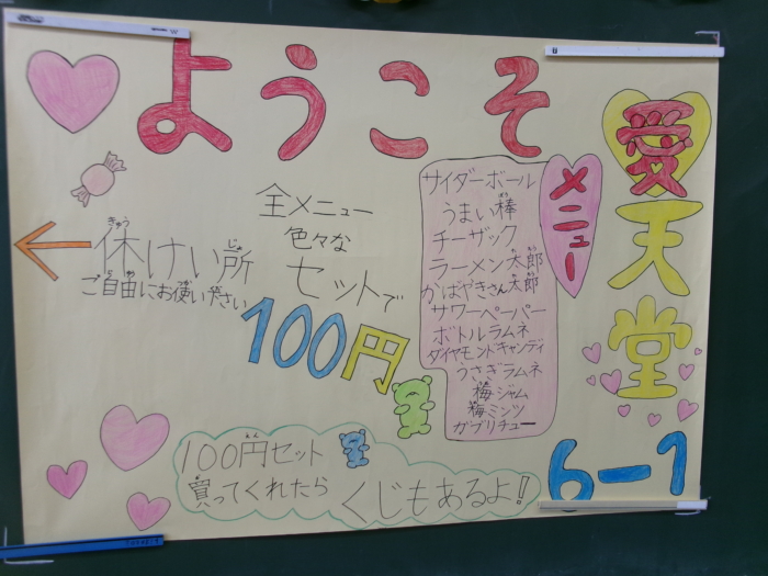 また、11月22日には、有志の6年生が、地域の大平ふれあいまつりで「だがしや」を出店しました。こちらは、11月1日の経験をもとに、セット売りやばら売りをし、地域の方に喜んでいただきました。